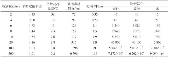 表1冷凝酸滴粒徑與平衡過(guò)飽和度