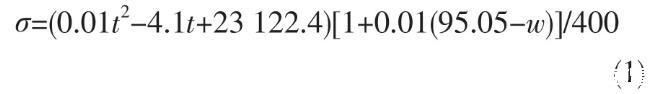 表面張力與物質(zhì)的性質(zhì)相關(guān),也是物性之一。液體分子間作用力越大,表面張力越大。由于氫鍵的存在,水分子間作用力很大,所以水的表面張力較大。硫酸的表面張力也不小,在20℃下,w(H2SO4)95%硫酸表面張力是水的80%左右。硫酸溫度提高,表面張力略有減小,但減小的速率比水要慢得多。隨著硫酸濃度增大,表面張力逐漸減小。對(duì)于濃硫酸而言,表面張力可用式(1)計(jì)算: