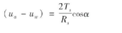 式中,(ua-uw)為基質吸力,Pa;Ts為水—氣分界面的表面張力,N m-1;Rs為曲率半徑,m;α為接觸角,°。