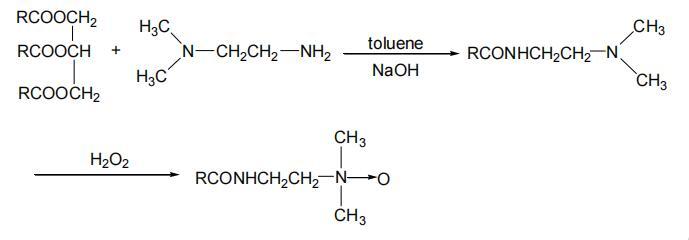 蓖麻油酰胺氧化胺的通式及合成方法 棉籽油酰胺氧化胺見Scheme 1。