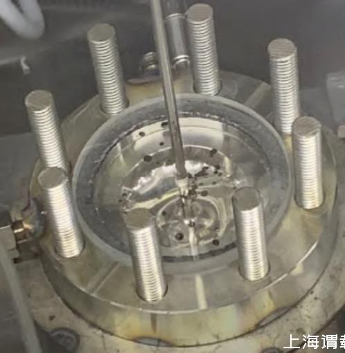 需要注意的是,由于液態鋰高溫下化學性質活潑,即便在手套箱氬氣環境下,它也可能與盛裝容器材料發生反應生成雜質,因此在實驗中應及時去除漂浮在坩堝表面的雜質。圖4為實驗中在毛細管內通入氬氣后液態鋰的鼓泡圖。